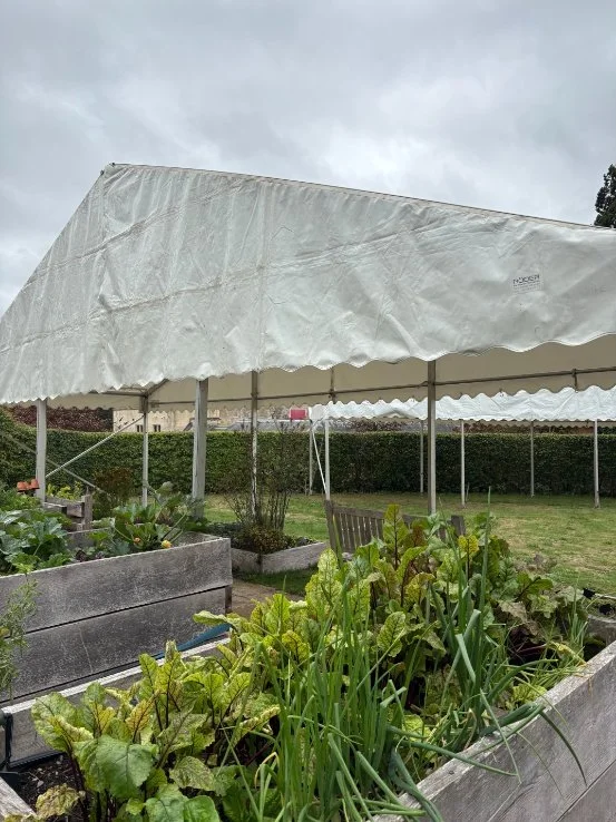 And it has rained. We tackled the weeds that sprang up in the courtyard, and we’re watching as the bedraggled Garden starts to recover. We’ve sown lettuces and kale at the pergola…