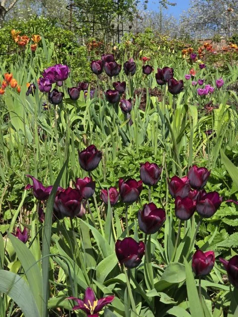 The Tulip blooms will soon be replaced by other delights. Already the Wisterias are coming into flower – and the irises, soon to follow. The Garden is changing daily, now. Come to visit often.