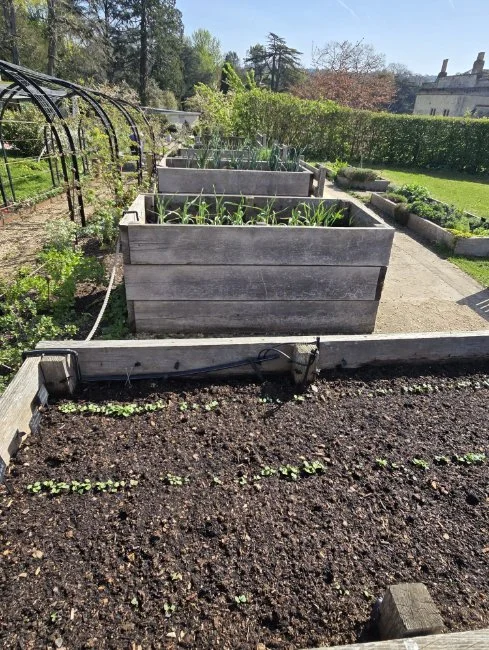 All is in order in the raised beds, with salad vegetables coming up, and the herbs beautifully tended by Nicola.
